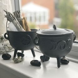 Maceta de hierro fundido de Triple Luna para incienso, resina, hierbas, hechizos, decoración de remache